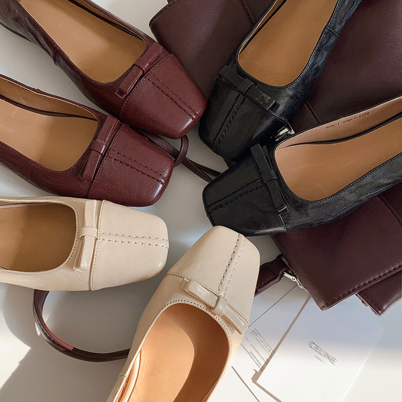 Womens Vintage Handmade Square Toe Ballet Comfort Flats