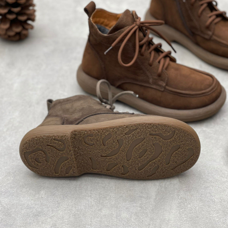 Women's Vintage Leather Lace-Up Zipper Ankle Boots – Flat Casual Comfort