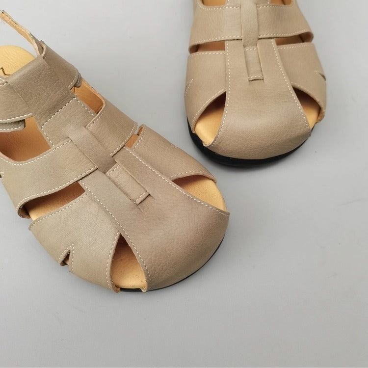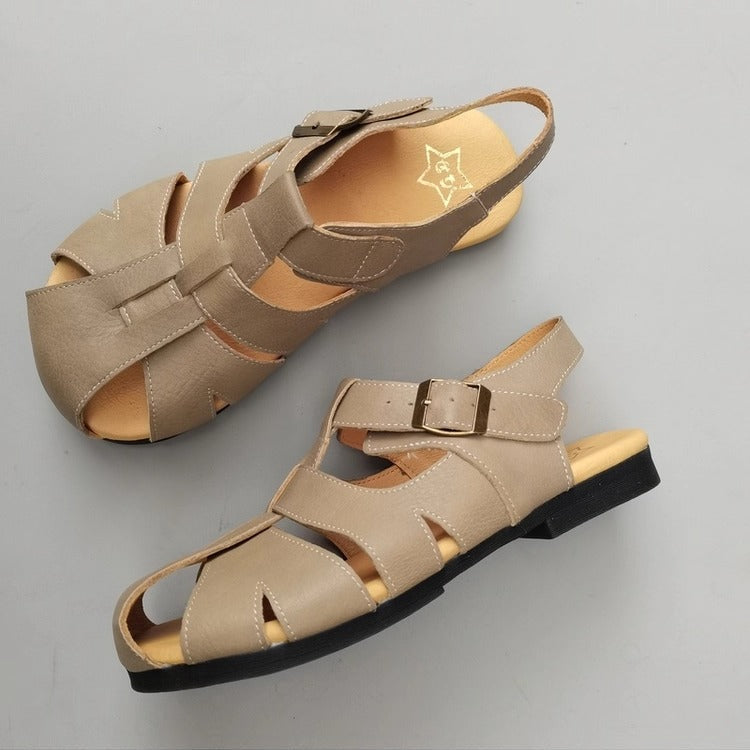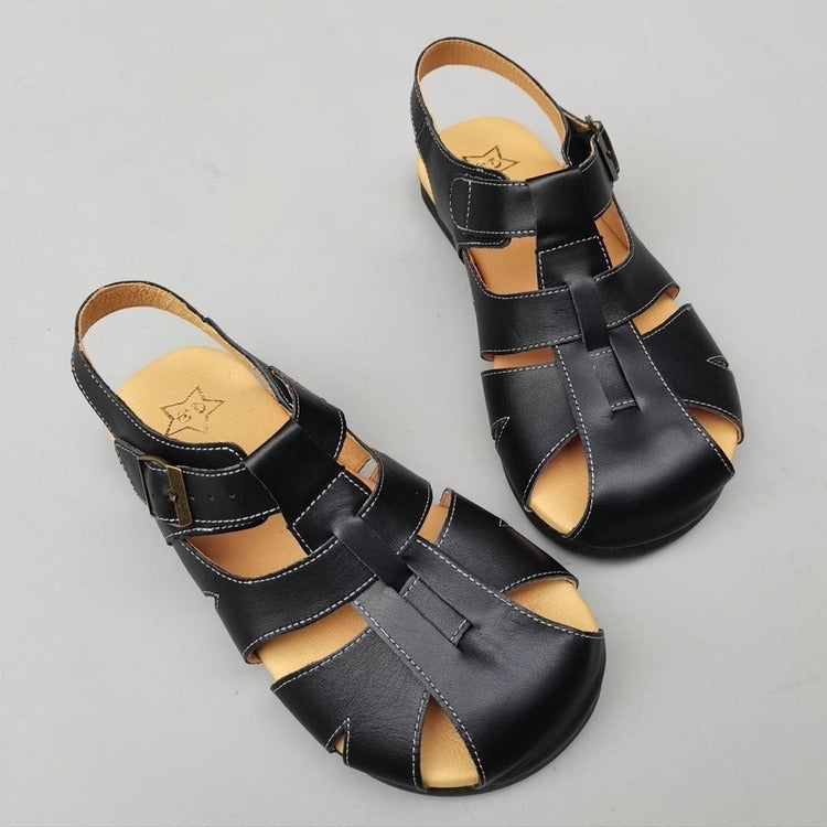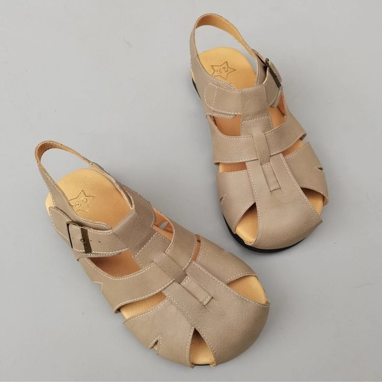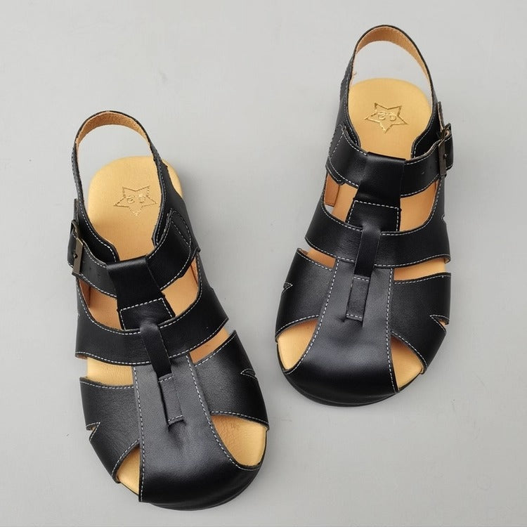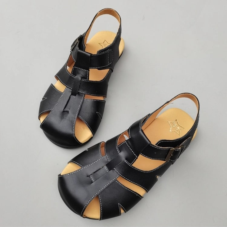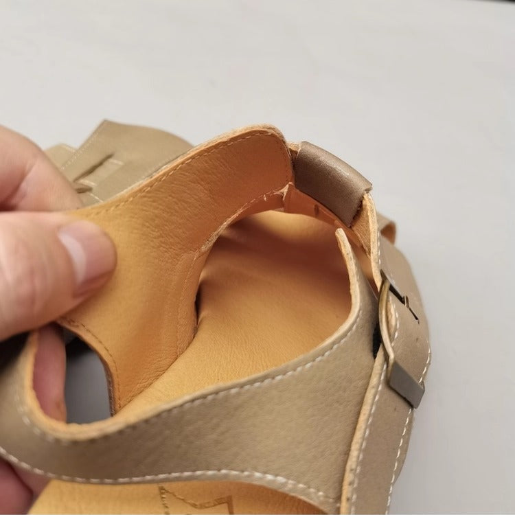Women's Wide-Fit Leather Sandals – Non-Slip, Comfortable & Casual for Summer