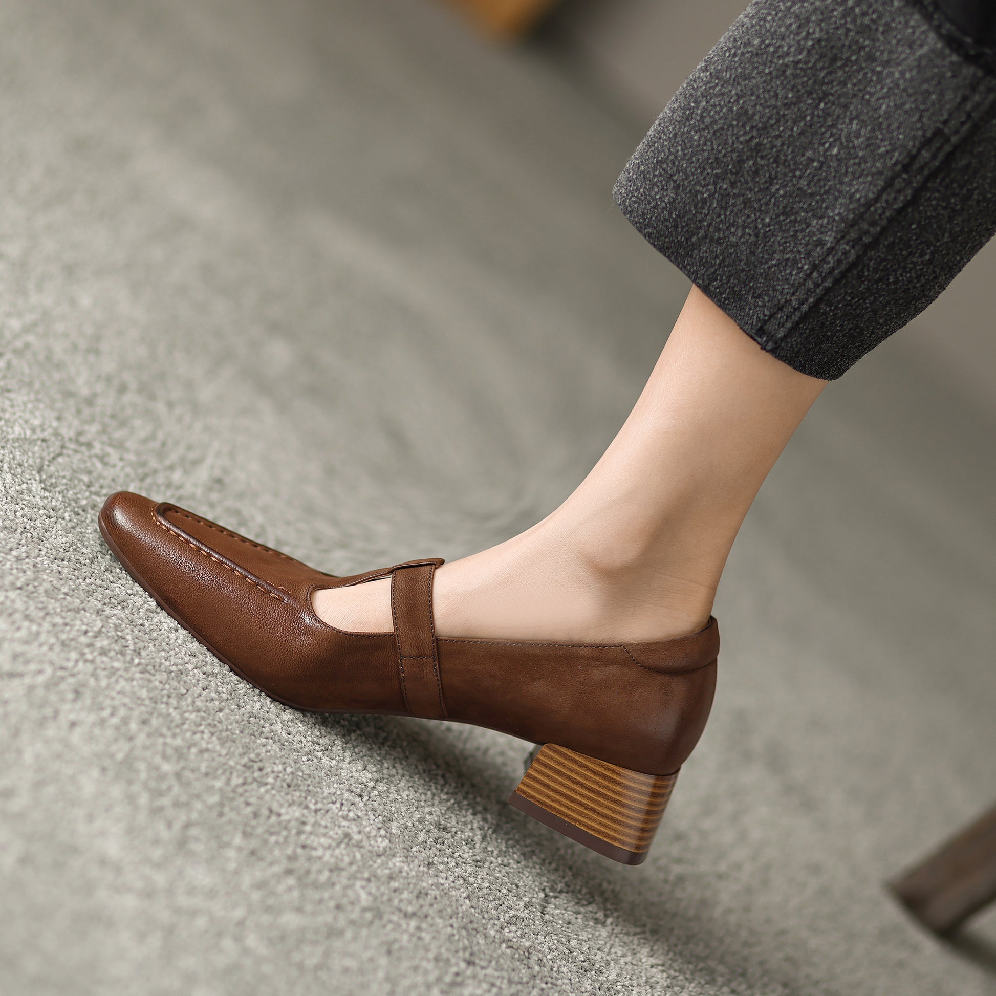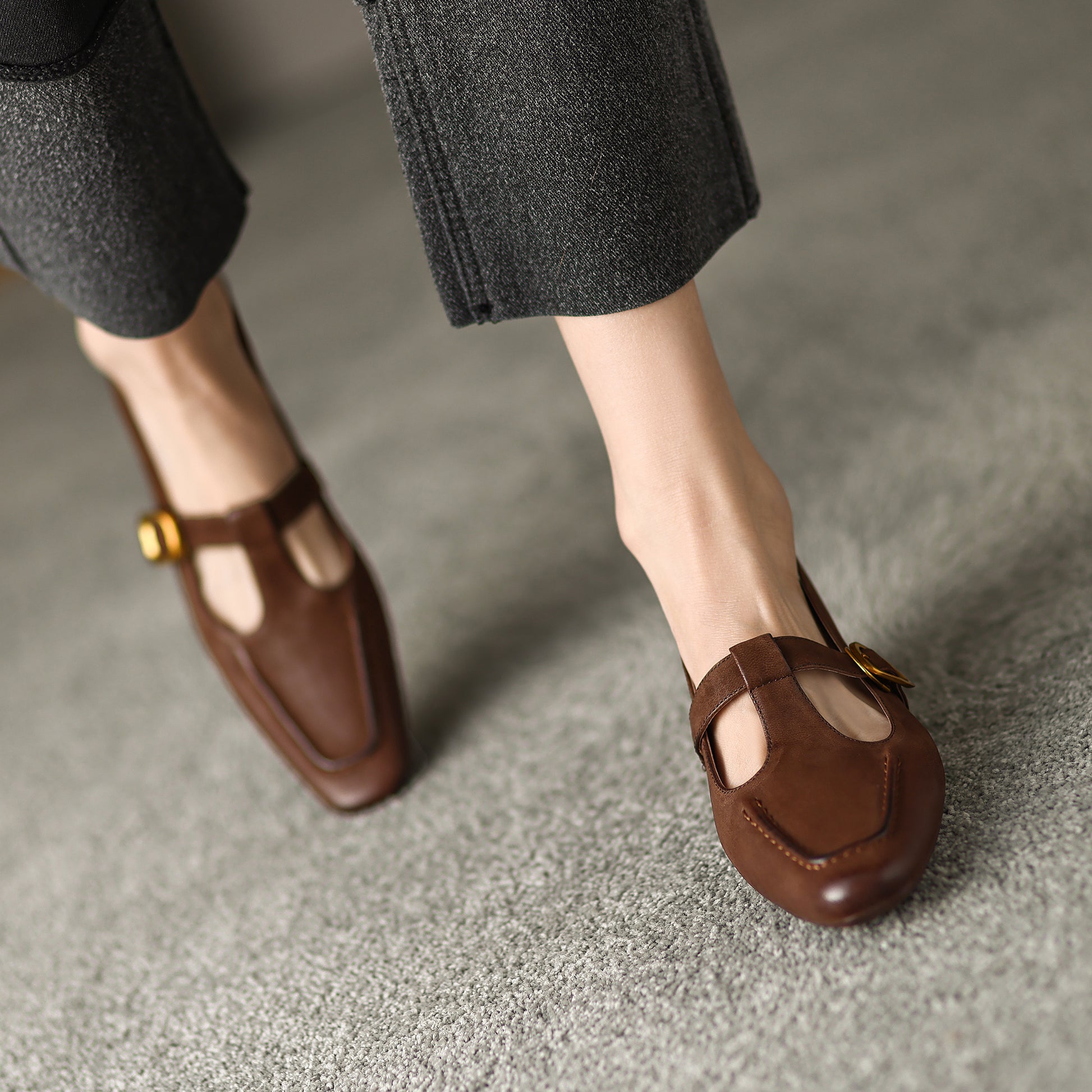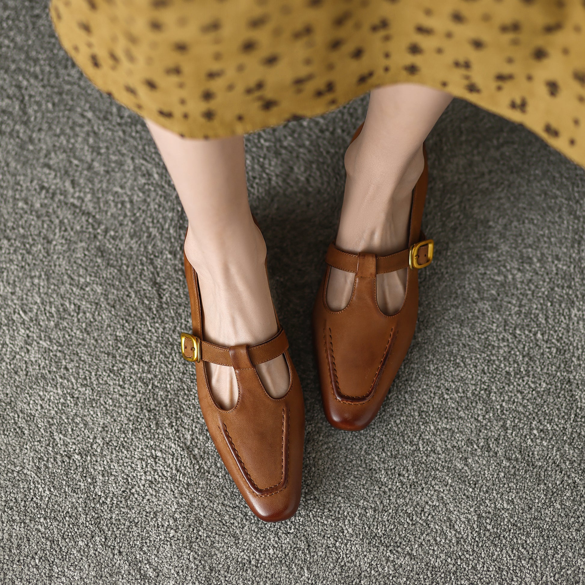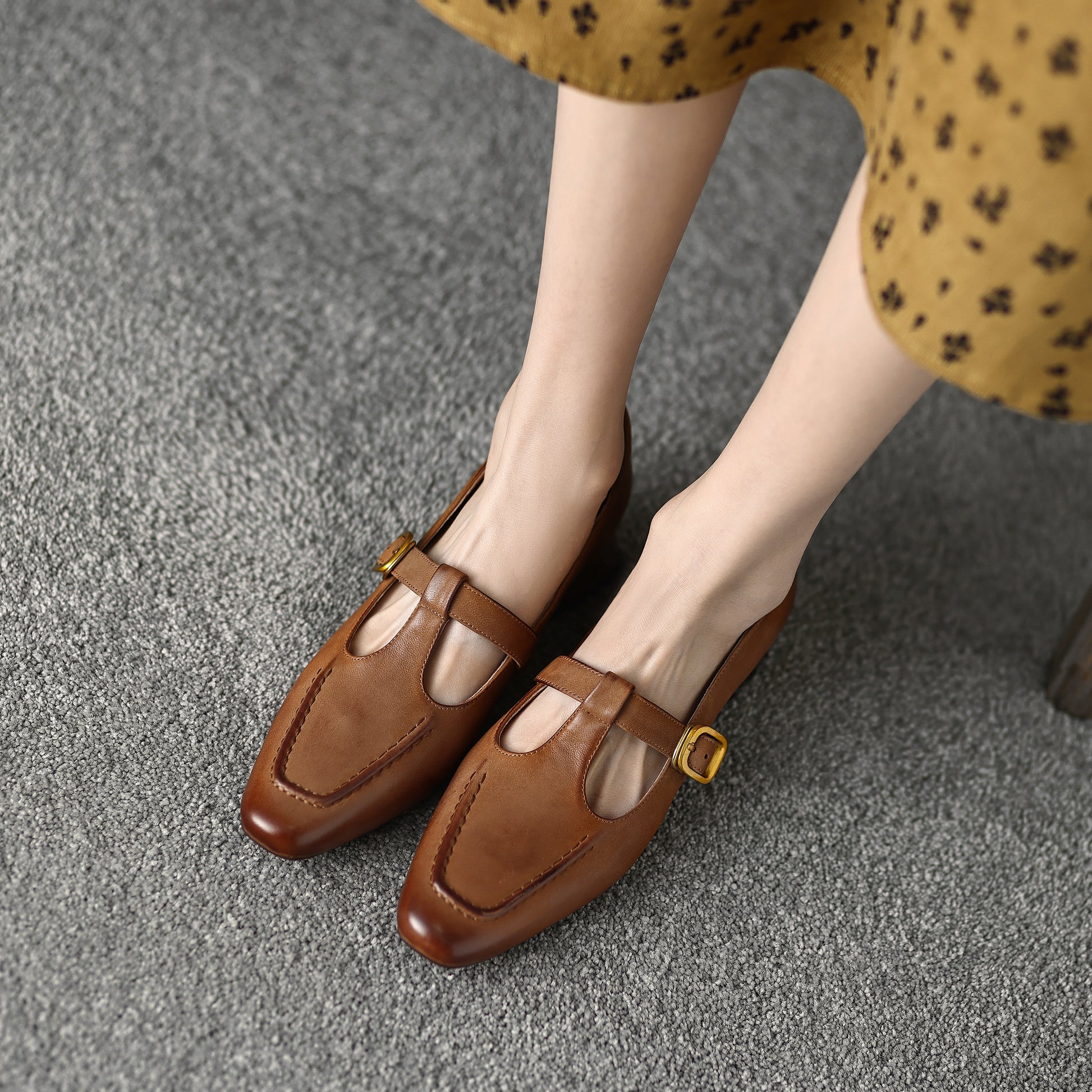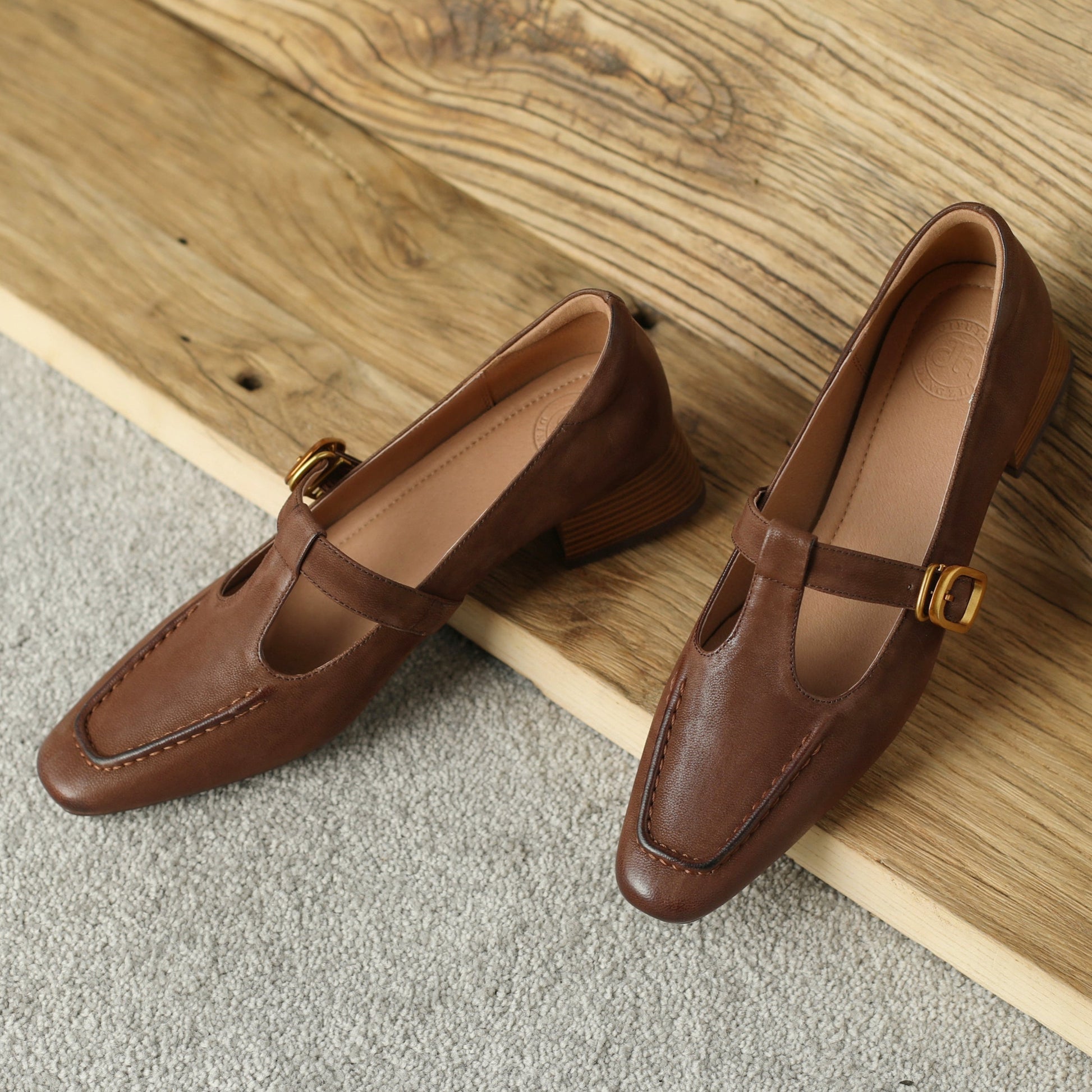 The EleganceT MaryJane is a refined women's dress shoe that combines vintage charm with contemporary comfort. Handmade from premium lambskin, this elegant T-strap design features a breathable pigskin lining and cushioned pigskin+latex insole for all-day wearability. The 4cm block heel and flexible rubber sole provide stable elevation, while the pointed toe and delicate T-strap create a flattering silhouette.
